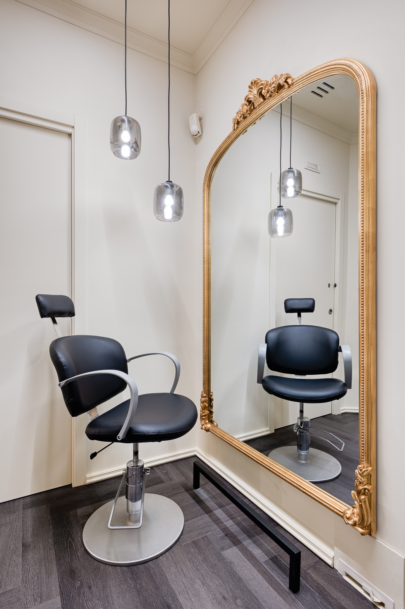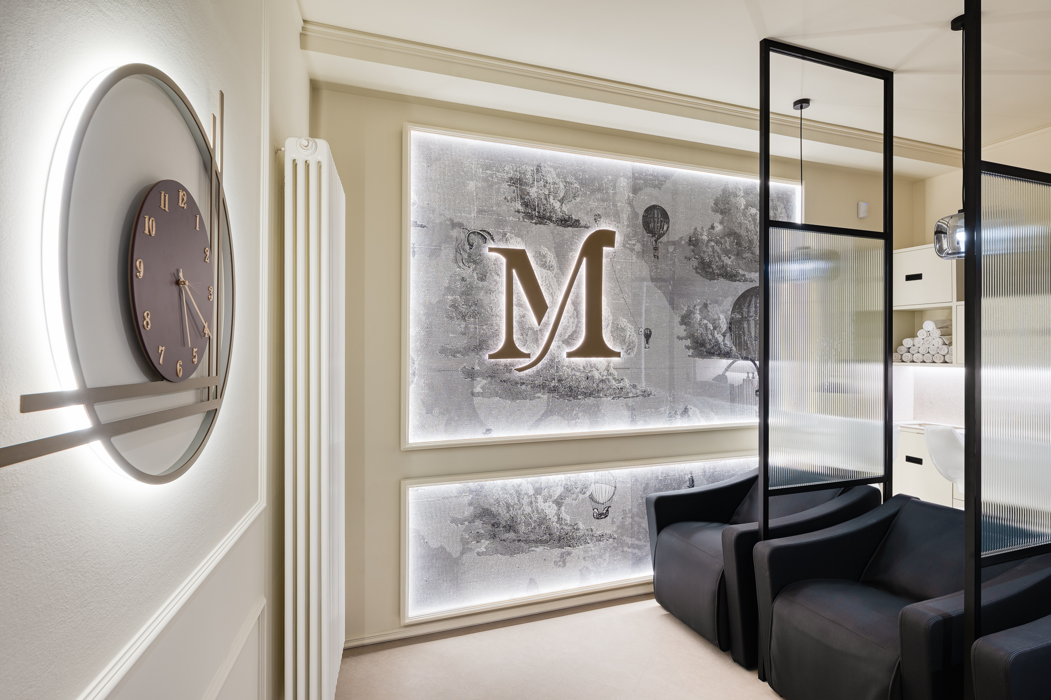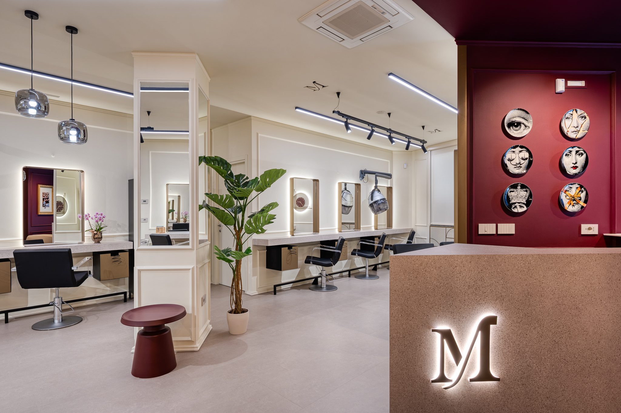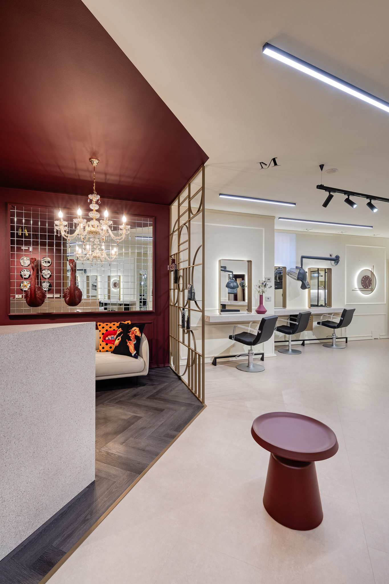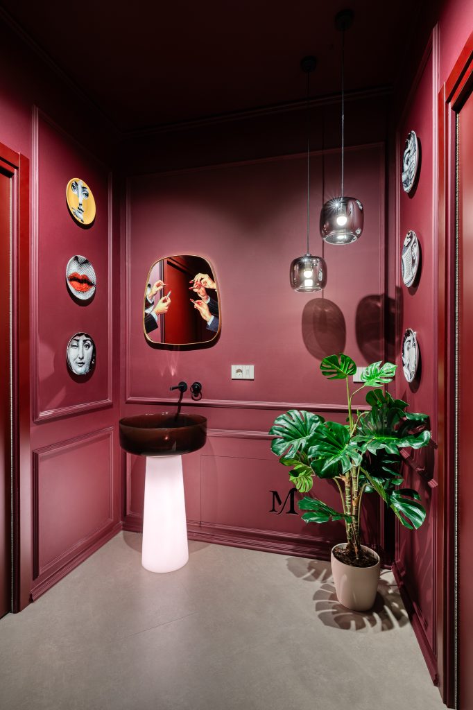 La proprietà ha fornito alcuni indirizzi progettuali, lasciando tuttavia piena libertà nelle scelte, permettendo così lo sviluppo di un progetto coerente e unitario. Fin dalle prime fasi è emersa l’esigenza di definire due ambienti distinti senza ricorrere a separazioni fisiche: il progetto lavora quindi su contrasti cromatici, alternando chiaro e scuro, e su scelte estetiche più decise, come lo specchio in ingresso, pensato per amplificare la percezione dello spazio.
